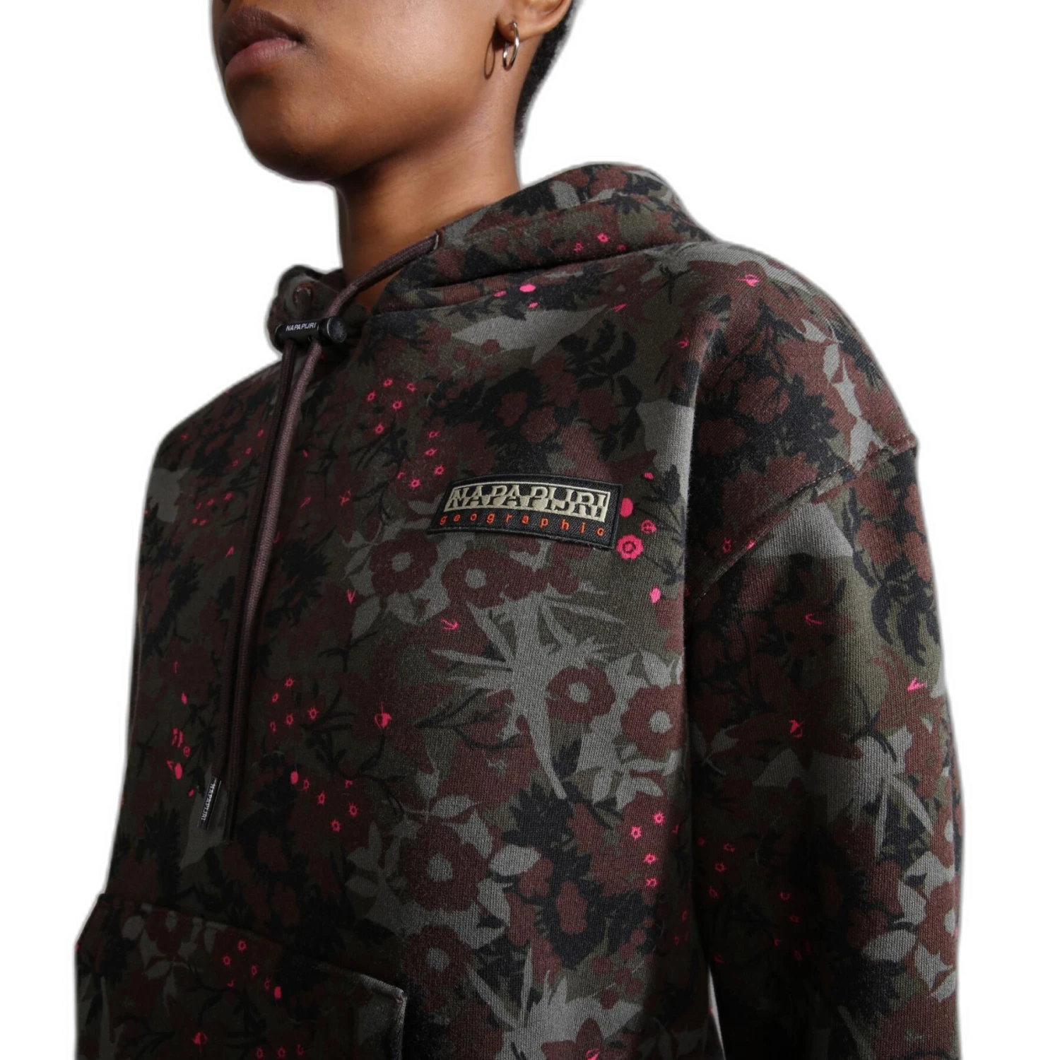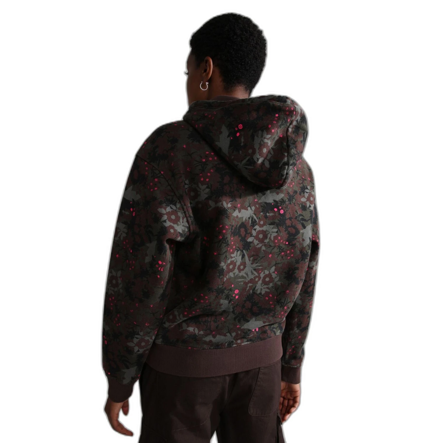 - Une capuche à cordon de serrage ajustable avec une poche kangourou donne un style classique tandis que le motif floral imprimé sur toute la surface en fait une pièce phare et un incontournable de la saison.