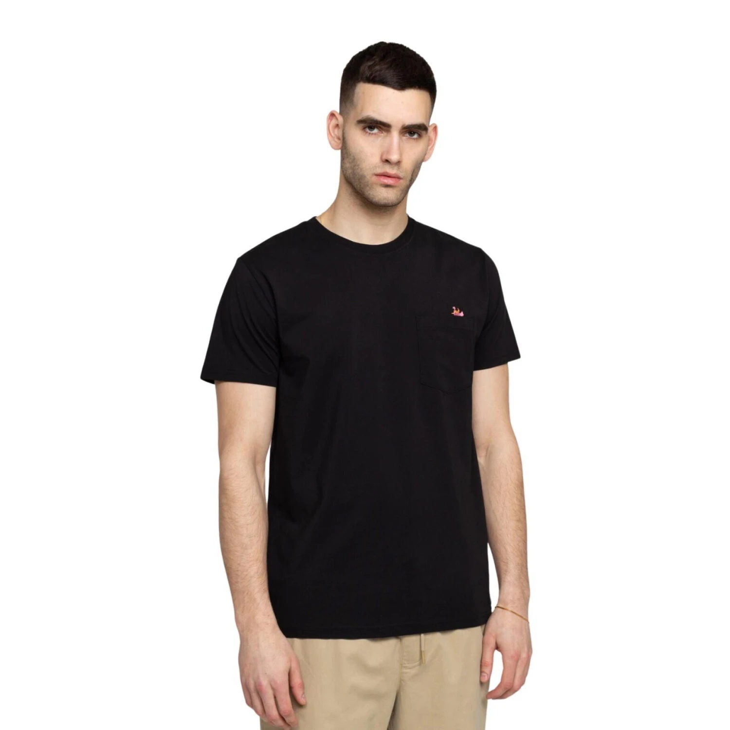 Un t-shirt à col rond de coupe régulière fabriqué à partir d’un jersey de coton organique. Il présente une petite broderie sur la poche et un jersey de marque L- 160 g/m².