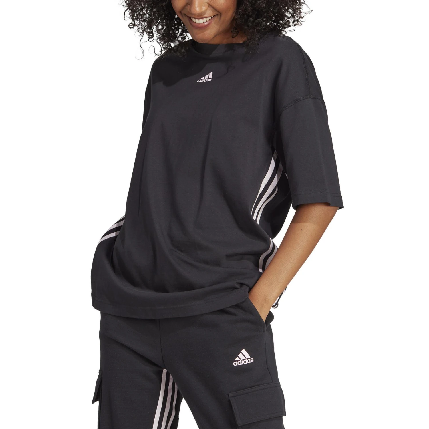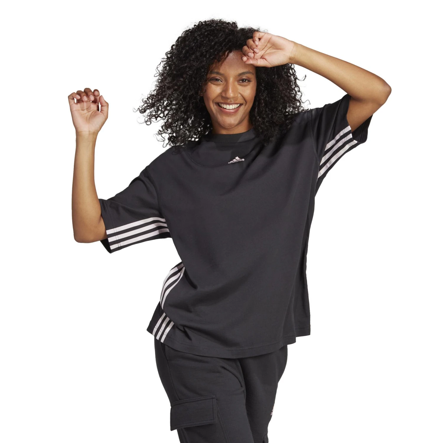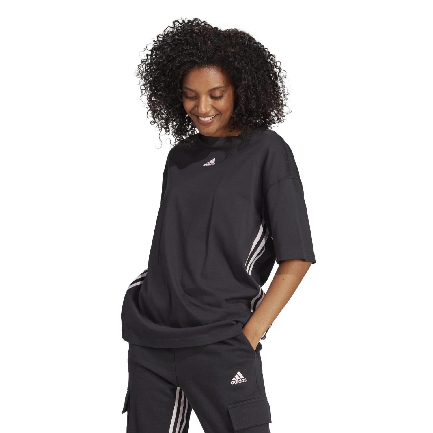 Un peu ample et tout ce qu’il te faut : voici ce t-shirt adidas. Conçu en jersey de coton, il suit tous tes mouvements et s’étire là où tu en as besoin. Ses emmanchures légèrement tombantes lui donnent un look urbain, tandis que 3 bandes élastiques sous les manches et sur les côtés ajoutent une touche sporty.Ce produit fait partie d’une collection All-Gender. Une taille M correspond à une taille M pour femmes. Si tu es plus grand(e), plus large ou que tu portes normalement une taille M pour hommes, choisis une taille supérieure.